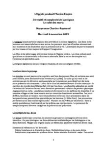 Je donne des cours en français sur l'Egypte ancienne, son histoire et sa culture. J'essaie aussi de présenter des thèmes qui nous sont proches en analysant les différences avec notre civilisation contemporaine ainsi que les influences possibles.